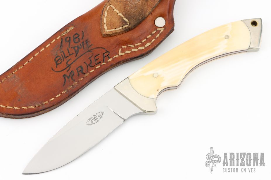 Bill Duff was from Oklahoma and sold his first knife in 1976, and was a long time member of The Knifemakers Guild. He made a variety of fixed blade and folding knives in 440C and Damascus. Bill passed away in 2019.