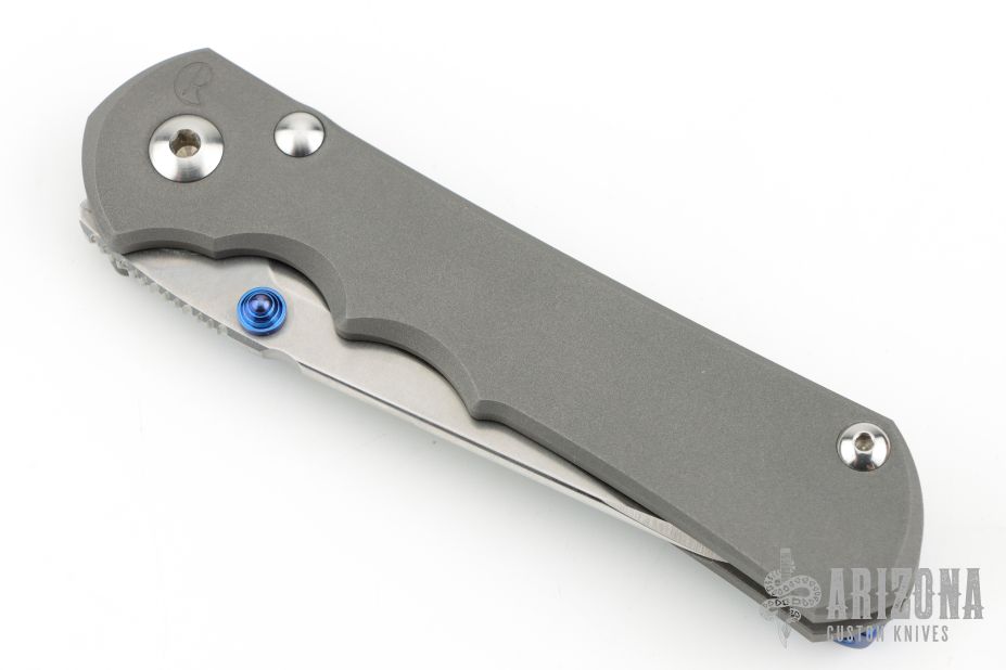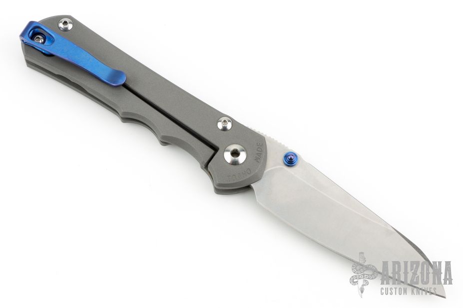 This Large Inkosi from Chris Reeve features a tumble finish blade with dual thumb-studs and a bead blast titanium frame. Bead blast titanium clip, tip up carry.  Comes with original box, cloth, tool, lube, and papers dated August 22, 2023. Nice detent, and blade seating. Has Lynch deep carry clip attached, and includes original clip as well as Lynch keychain. Excellent condition.