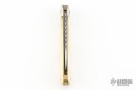 The shape of the knife and blade, the means of attaching (multiple pins) the scales and the engraving, all, appear to be far departures from any “Folding Hunter” and engraving that I’ve observed of Bone’s work. I prefer to think he didn’t make nor engrave the knife. After all, Ralph was a Master at, both, knife making and engraving! That example does not reflect masterful engraving nor knife assembly. Note, also, how Ralph made it a practice of undercutting both scales into the front bolster to avoid the necessity of a pin. On the subject, the scales are not undercut and, therefore, had to be pinned at, both, front and rear. Those are my thoughts