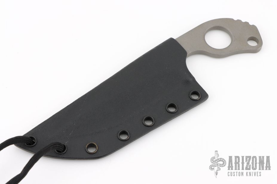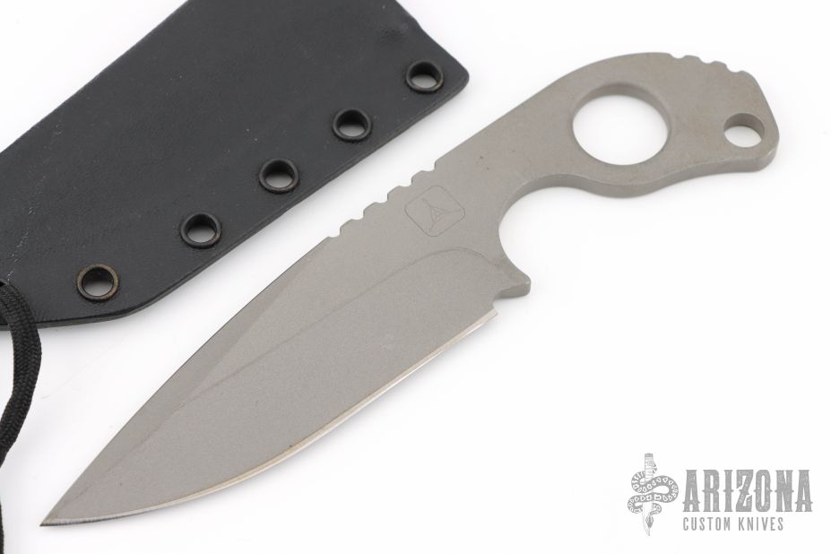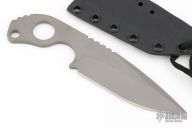 This SLCC by Strider Knives features a bead blasted spear point blade with partially sharpened top edge and notched thumbrest, .190" blade thickness and 1.357" blade depth. Has some sheath scuffs, and light scratches. Great condition otherwise. Comes with a kydex sheath. TAD Edition