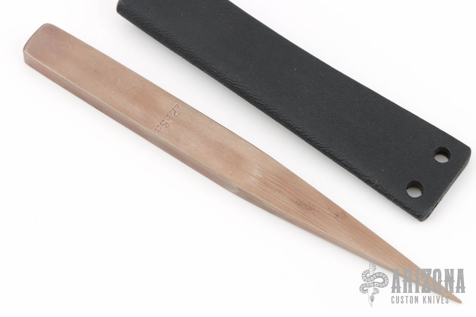 This steel Strider nail comes with a kydex sheath. Has scuffs, Excellent condition. .262" thick, .567" wide.