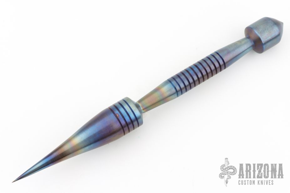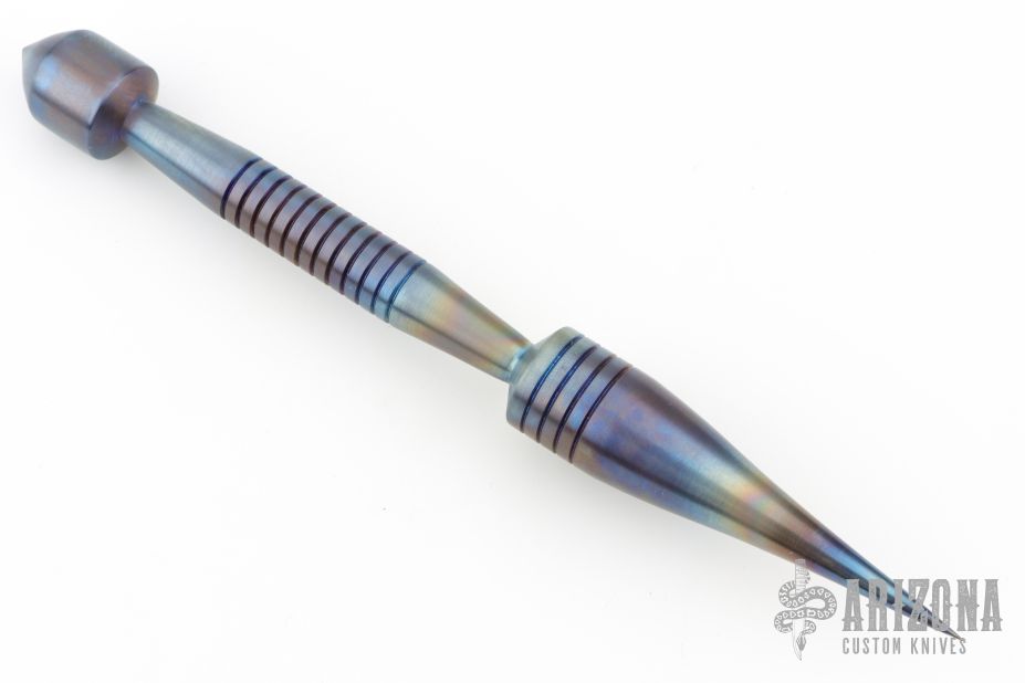 This Flamed titanium Spike Kubaton by Pavlin Shahanov is made from flamed titanium. New from maker. .945" diameter at the widest point and .620" diameter at the handle.