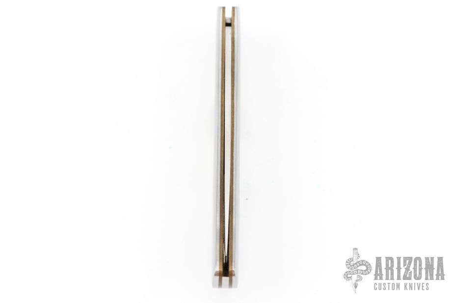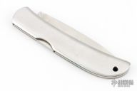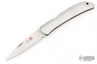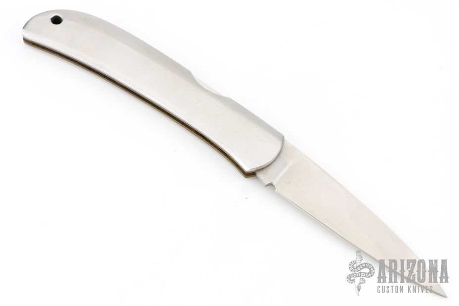 This Hawk by Al Mar features a satin finished blade with nail nick. The handle has a stainless steel scales, brass liners and stainless lockbar. Includes original leather slip sheath. Has some light scratches, otherwise excellent condition.