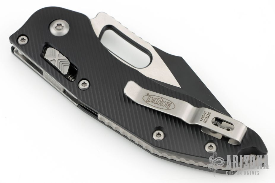 The Microtech Stitch Ram-Lok is Microtech's exciting new take on the beloved Stitch Automatic. It boasts Microtech's exclusive Bohler M390MK steel blade, offering improved edge retention over standard Bohler M390 steel. The knife employs the Ram-Lok, not too dissimilar from a crossbar lock, for tight blade lock-up, easy one-handed closing, and tremendous strength; to disengage the lock, simply pull away from the blade on the X-Buttons. The handle features lightweight scales over steel liners with a titanium backspacer. Take on any cutting task with the manual Stitch!
