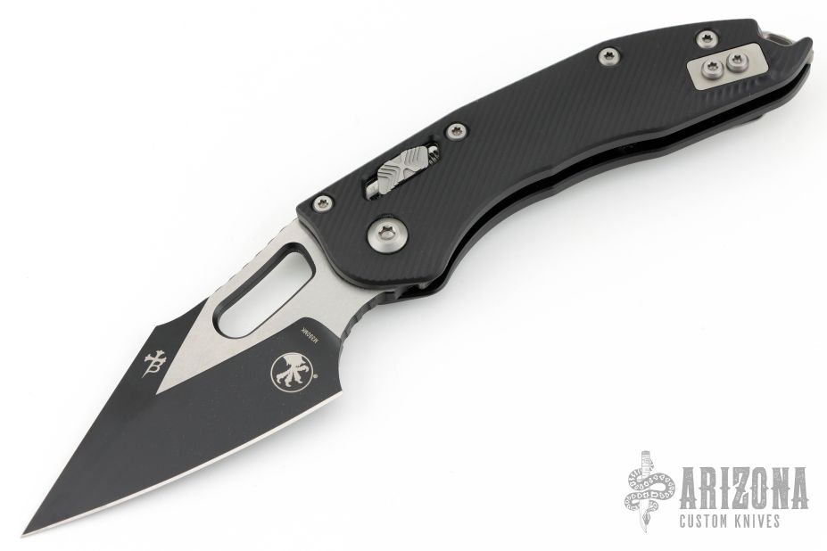 - Blade: Two-tone Wharncliffe blade made from Bohler M390MK.