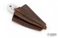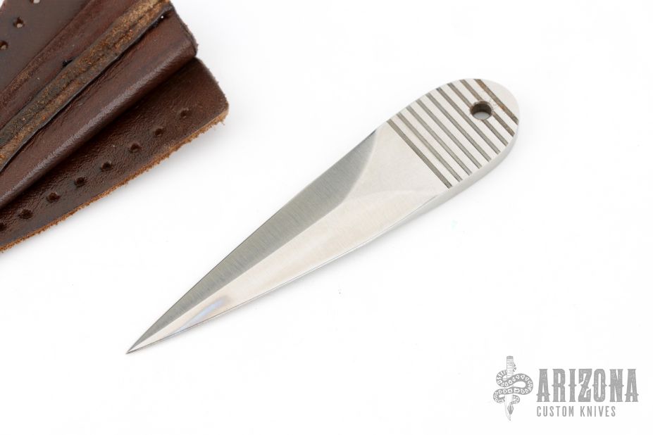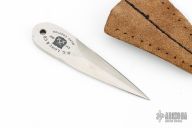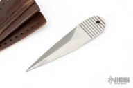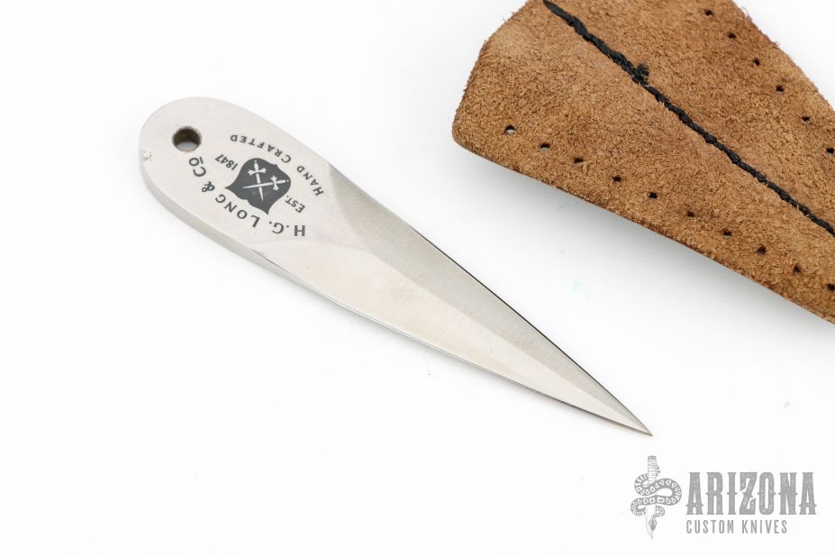 This Thumb Dagger by HG Long and Co features a satin finished double edged blade and handle, .138" blade stock and .660" blade depth, integral construction. Comes with a black leather wallet sheath that can be sown into clothing. Excellent condition. Comes with original box.