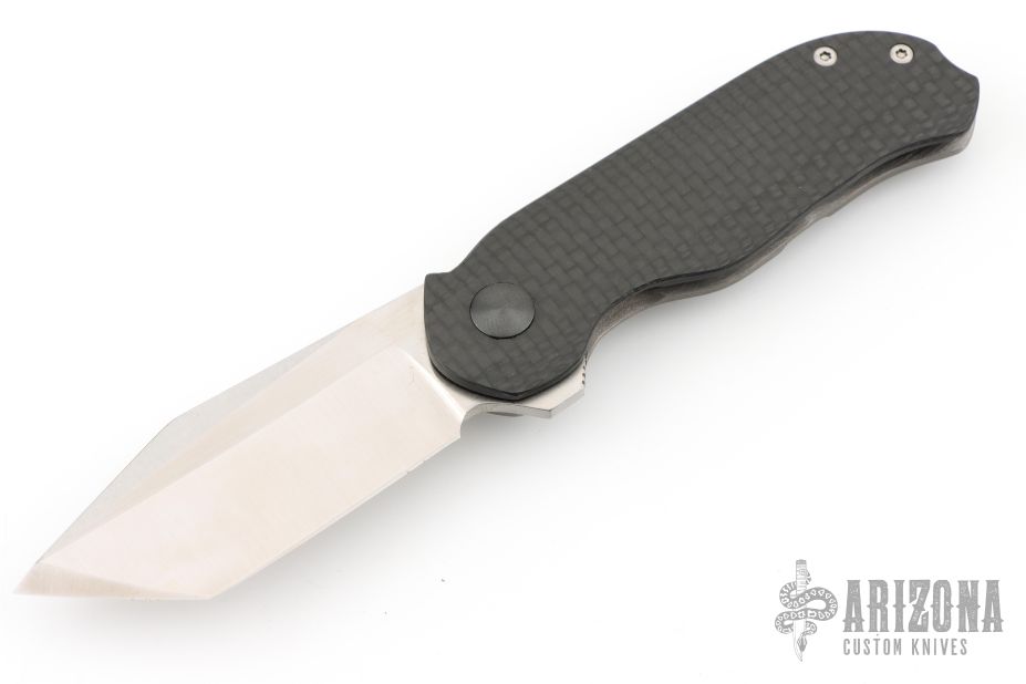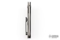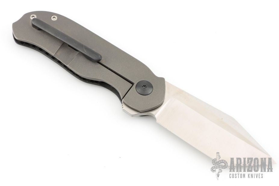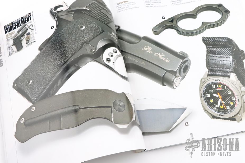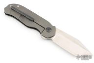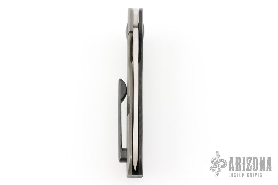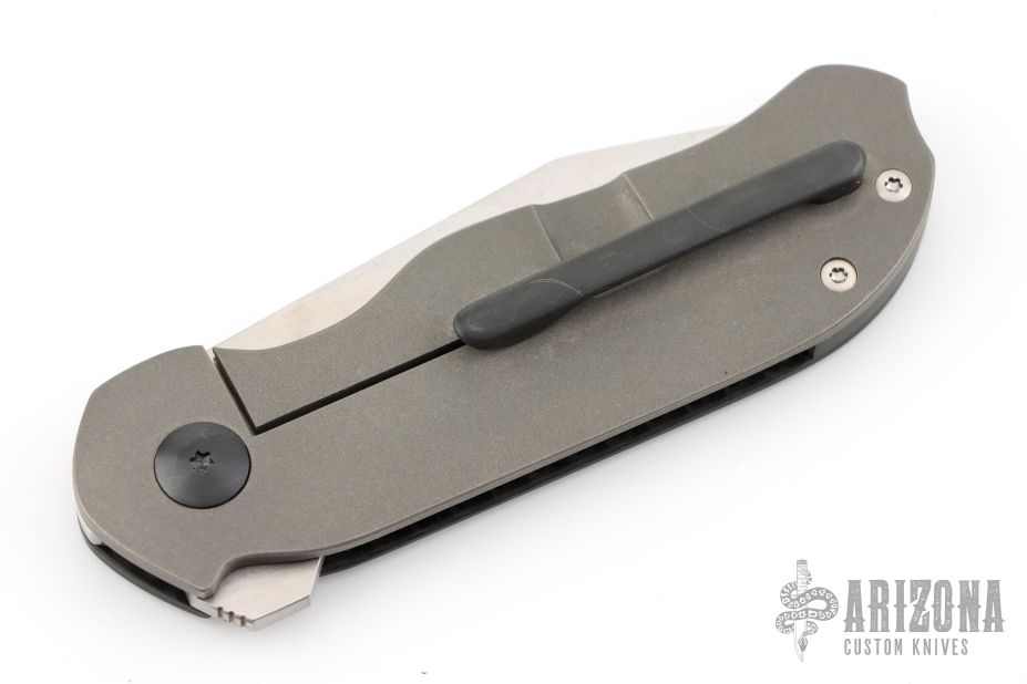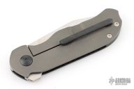 This Mini Sligo by Collins Custom Knives features a satin finished clip point tanto blade with notched flipper. The handle has a bead blasted titanium frame with a zirc pivot, and tip up clip with hidden screws, backspacer. Comes with a zippered case and COA, dated 5-27-17. This knife was on the cover of issue #10 of concealment magazine. This listing also includes a copy. Has some scratches on the clip, otherwise Excellent condition.