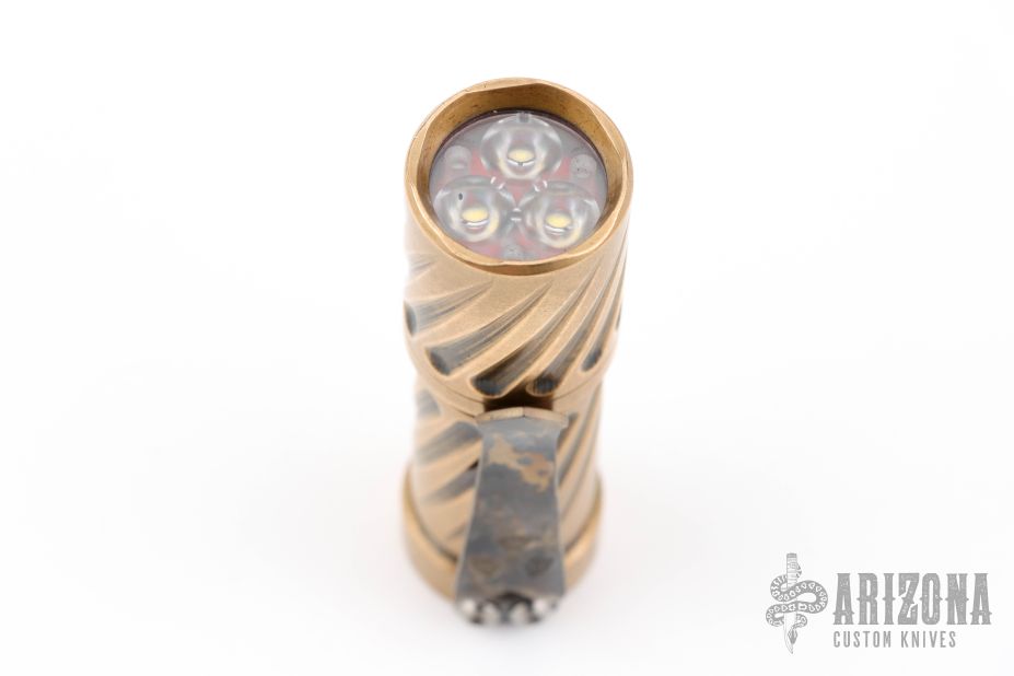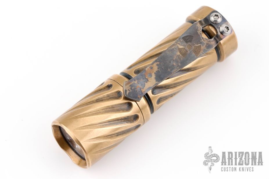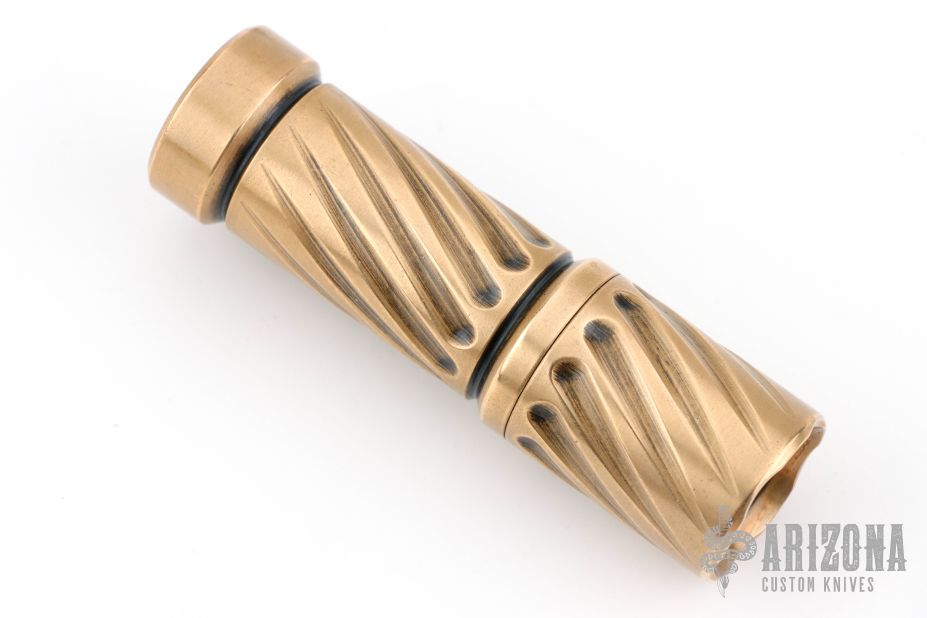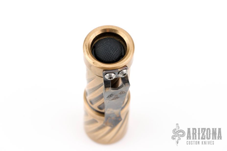 This brass Trident from Hanko features the twist pattern and the standard HMK/Steel Flame pocket clip. Comes in a zipper case. Has some scuffs, scratches, and patina. Great condition otherwise.