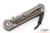 This Large Inkosi from Chris Reeve Knives features a tumble finished blade with dual thumb studs and notched thumbrest. The handle has a bead blasted titanium frame over a titanium backstrap with a titanium tip up clip. Natural canvas micarta Inlays. Comes with original box. Has scuffs and scratches, otherwise good condition.