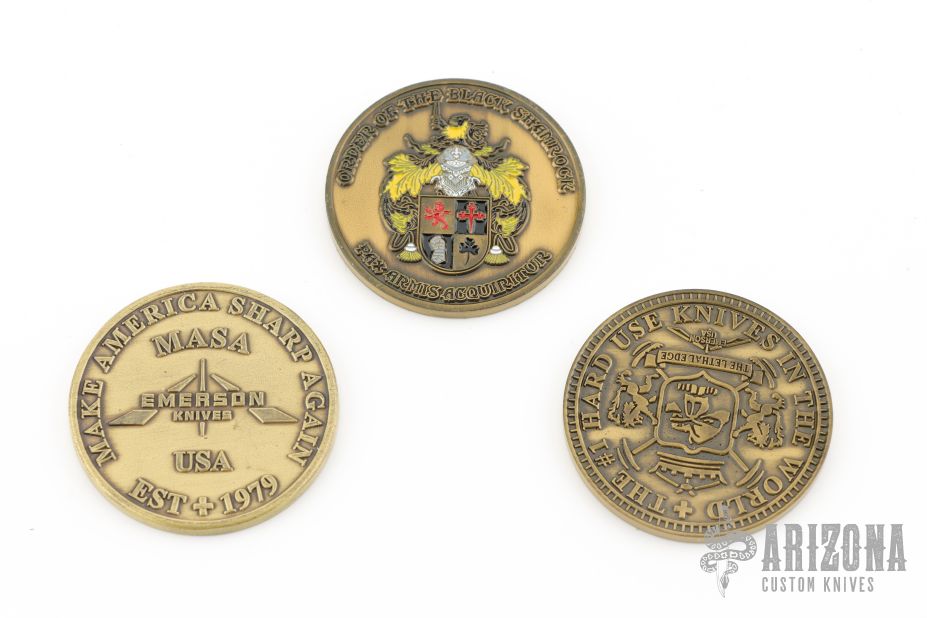 Lot of Three: Emerson Knives Challenge Coins. Excellent condition.