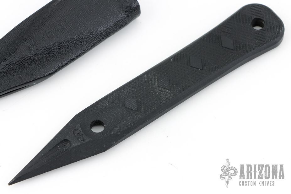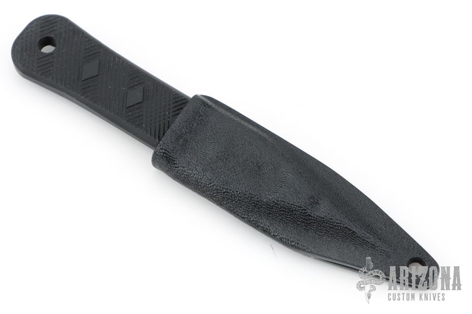 This lapel dagger is machined from VZ Grips proprietary G10. This dagger is lightweight, slim and aggressive. .27" Blade Stock. .870 "Blade Depth. The tip is barley blunted otherwise the knife is in Excellent Condition. Comes with a kydex sheath.