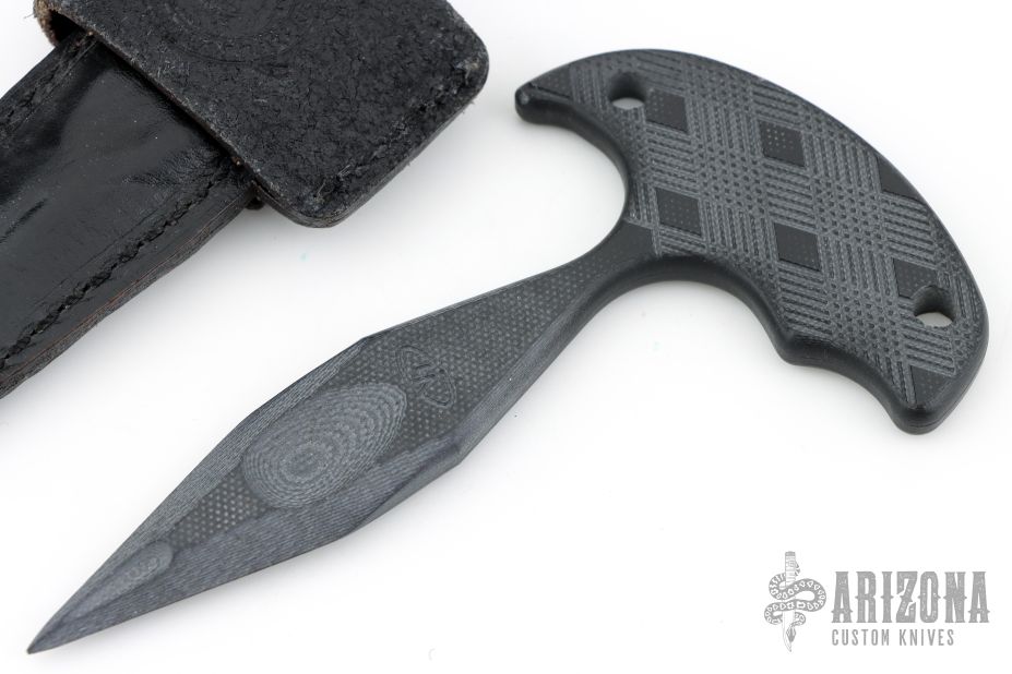This push dagger is machined from VZ Grips proprietary G10. This dagger is lightweight, slim and aggressive. .288" Blade Stock. .852"Blade Depth. The tip is barley blunted otherwise the knife is in Excellent Condition. Comes with a Kydex/leather sheath.