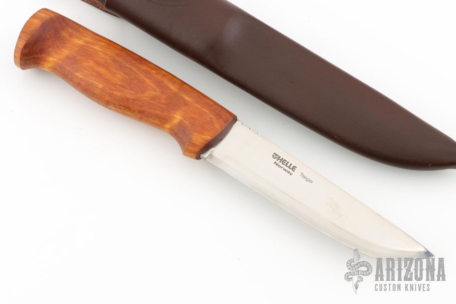 Since early times, the Norwegian knife has been an important companion in everyday life. Norwegian knife manufacturing today is clearly influenced by traditional shapes and materials that were established hundreds of years ago. A well-made leather sheath and handles of wood, leather, and antler seem to be a legacy that Norwegians want to preserve. A/S Helle Fabrikker is dedicated to honoring this legacy by developing knives that are on the leading edge of technology, yet still maintain the traditional look and feel of a truly Norwegian knife. Unique in Helle knives is the laminated stainless steel used to produce a tough, razor-sharp blade. The technology was developed by their company in cooperation with a Norwegian steel mill. This high performance steel is available only in their knives and gives each blade a unique combination of high strength and long lasting sharpness. Laminated steel is another Norwegian tradition that is rarely found in other parts of the world.