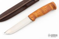 The Taiga is a big working knife suited for larger hands. The handle of colored birch is well shaped for a comfortable grip.