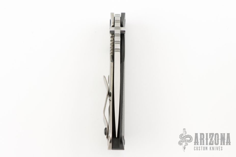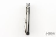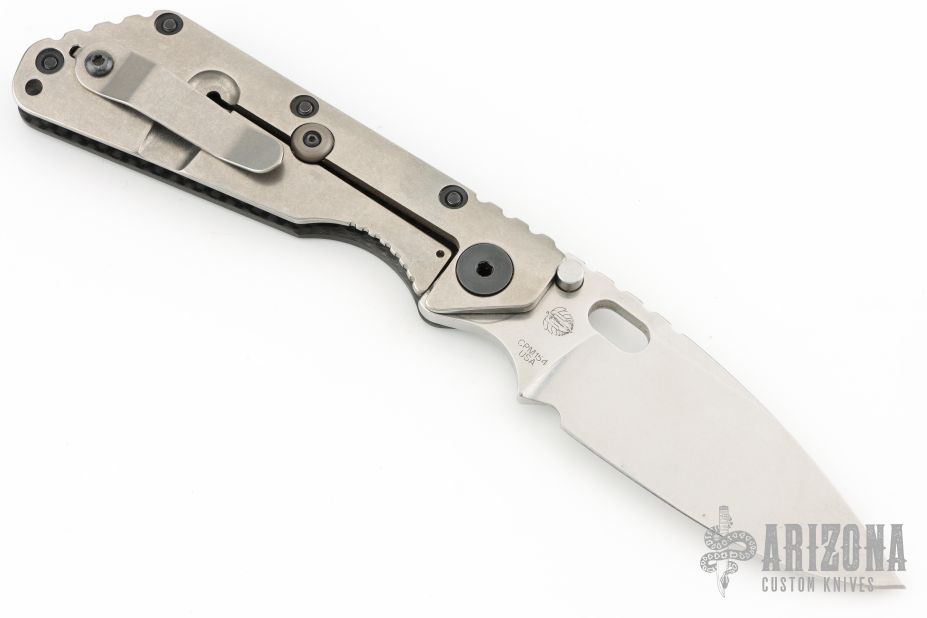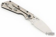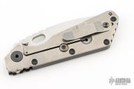 This SMF CC by Strider Knives features a stonewashed blade and smooth carbon fiber and a stonewashed titanium handle and matching tip up titanium clip. Notches on thumbrest, rear of handle, and early lockup. Includes Hinderer "Lock Bar Stabilizer" for maximum reverse lock retention. Excellent condition.