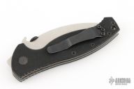 "When the U.S. Navy needed a rescue knife they came directly to Emerson Knives. The SARK knife was designed specifically for emergency use situations where safety and effectiveness are equally important.  This is an official issue rescue knife to the elite U.S. Navy Rescue Teams." Stonewashed blade with sharp tip, wave feature, and thumb disk. Textured black G10 scales. Notching in thumb rest and finger hold area. Excellent condition. #1921. Comes with Emerson skull bead.