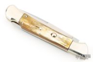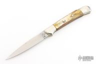This Lockback Auto by Dolphin D.M. features a tumble polished spear point blade with false top edge. The handle has nickel silver bolsters, honey horn scales, brass liners, stainless steel backspacer. Excellent Condition.