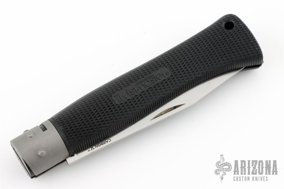 This Cold Steel Twistmaster features a satin finished blade and a strong molded handle with a ring locking blade. Original factory edge.  From Lynn Thompson's collection includes a COA attetsing to authentinicity. Excellent Condition.