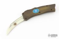 - Blade: Curved hawkbill blade made from CPM MagnaCut steel with a two-tone blade.