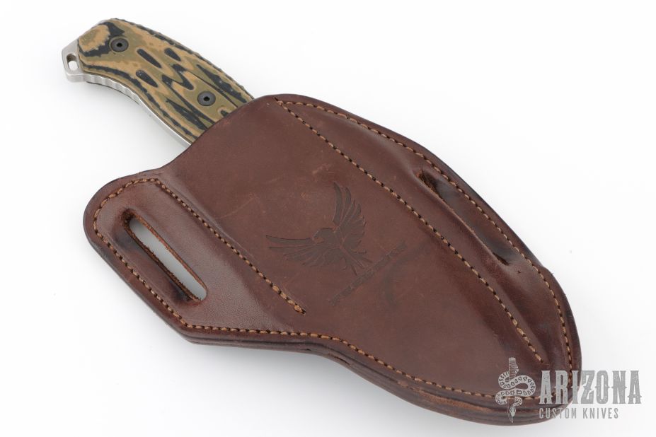 The custom brown leather sheath.