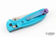 This 556S Mini Griptilian by Benchmade features a stonewashed drop point partially serrated blade with dual custom titanium thumb studs and notched thumbrest. The handle has custom anodized aluminum scales with anodized titanium screws from Monkey Edge, stainless steel sub frame, Lynch NW deep carry tip up clip is reversible for right or left hand carry. Excellent condition. Comes with original box and papers.