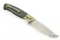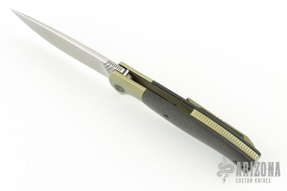 The 901 Deacon is modeled after the 703 Flipper but in a distinctly more compact size and totally different theater of use. The Deacon shines as an EDC knife, perfectly sized to disappear in the pocket until its number is called. It also features a construction method that we can only describe as premium. The handle features a titanium frame with integral bolsters... nothing new, but if you look a little closer, you'll notice something special. The titanium frames are actually inset into the carbon fiber scales so as you look down the spine of the knife, you only see the carbon fiber scales and bronze bolsters. There are no liners visible, which may not seem huge, but it actually is. This shows We's continued effort to put out the best knives possible and it also attributes to the thin overall form factor this knife possesses. It's a subtle feature but one that truly transforms this knife into a premium EDC piece to rival any of the best ones currently out there.