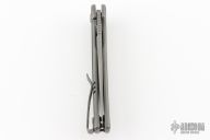 - Stonewashed titanium frame with black canvas micarta scales.