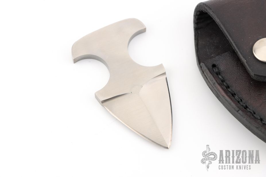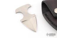 This Dagger by Tiger Knives features a satin finished double edged blade and handle, .195" blade stock and 1.491" blade depth, integral construction. Comes with keychain leather button sheath and maker's card. Has some scratches, excellent condition otherwise.