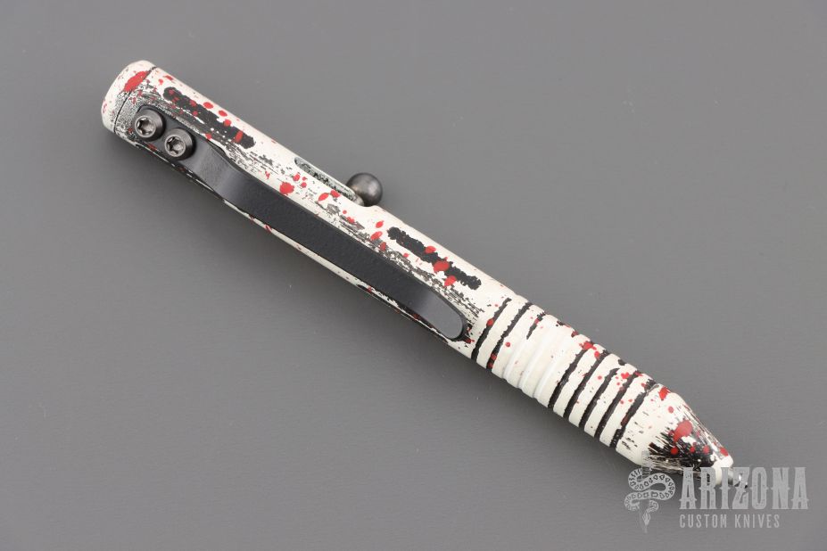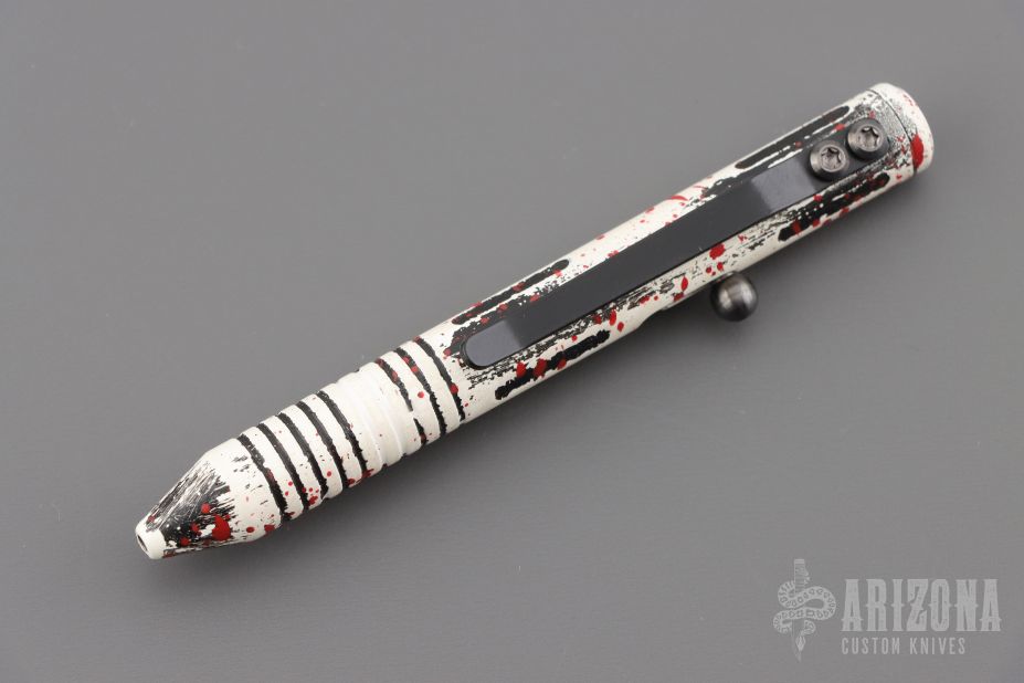 This TiNy Bolt Deluxe Action Pen from Brian Fellhoelter was customized by Capt. Axel, is made from titanium with Bloody Storm Trooper finish. Comes with original tube and dog tag. Excellent condition.
