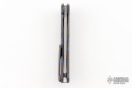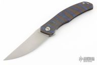 This Quantum MEFP by Shirogorov features a stonewashed Cromax PM blade with notched thumbrest and flipper. The handle has a tumbled and milled titanium frame, backspacer, tip up titanium clip with hidden screws. Rides on SRB, nice detent, lockup and blade seating. Comes with original box and COA. Excellent condition.