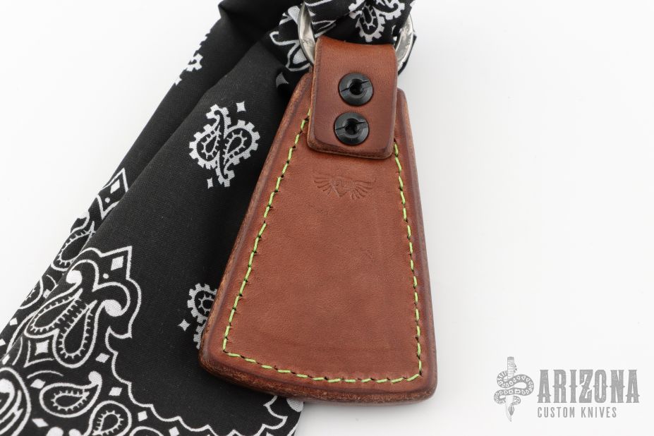 The Cowbell Sap is RMJ's take on the bandana sap. The Cowbell keeps your bandana or handkerchief handy, and sitting at the end of your bandana, is the perfect way to ring a bell! This Slugshot variation features black leather with contrasting red stitching and a bandana for some extra leverage. Constructed from cowhide with a lead core. Thick enough to lay on a wallop, and easy to carry. Monkey Edge Exclusive.