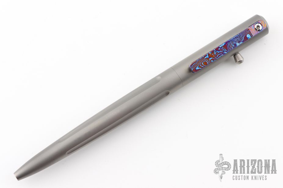 Titanium Pen with Mokuti clip by Enrique Pena. Comes with original box. Excellent condition.