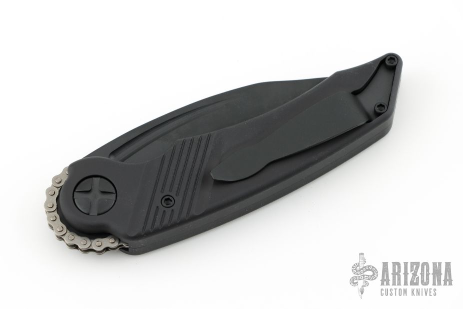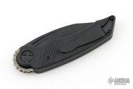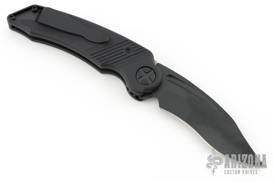 This Mini MRX from Rat Worx/Guardian Tactical features a black recurve blade with fullers . The handle is comprised of a black anodized aluminum handle with stainless steel tip up clip and lanyard hole in pommel. Includes padded and zippered case, original box and papers. Excellent condition.