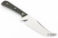 This knife features a mirror polished blade with .253" blade stock and 1.43" blade depth, full tang construction. The handle has pinned micarta covers. Has some scratches otherwise excellent condition.