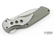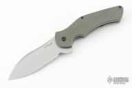 The Kershaw Junkyard Dog II is a Tim Galyean design, it features a fine bead blast blade with false top edge and partial serrations. Easily opened via the Flipper system on the spine. The handle has green G-10 scales with a textured finish, stainless steel liners and tip down carry stainless steel clip. Nice detent, lockup and blade seating. Comes with original box and papers. Has a couple light scuffs and scratches, excellent condition otherwise.