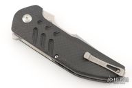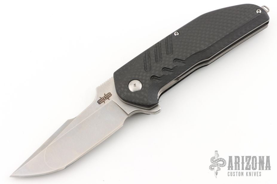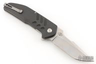This Strife Linerlock Flipper (578/1000) has a satin finished D2 tanto blade with swedge and notched thumbrest. Handle is carbon fiber over titanium liners. Black G10 backspacer, lanyard loop, and stainless steel tip up clip. Centered blade, flips great, and rock solid lockup. Excellent condition. Comes with original box and CoA.