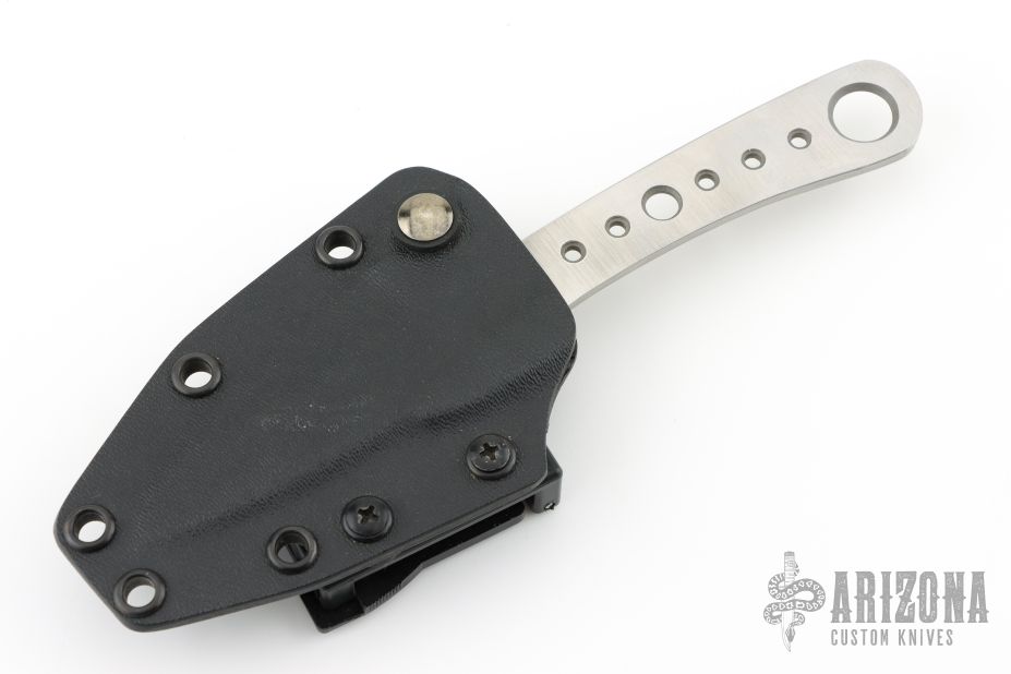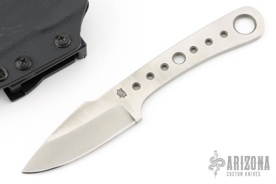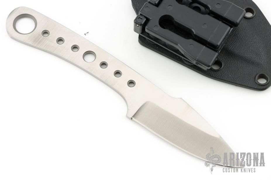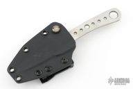 This boot knife by LT Wright has a bead blast finished blade with thumb ramp, .120" blade thickness and 1.092" blade depth, full tang construction. Comes with a kydex sheath with clip. Has some scuffs and scratches, excellent condition otherwise.