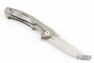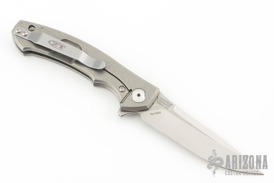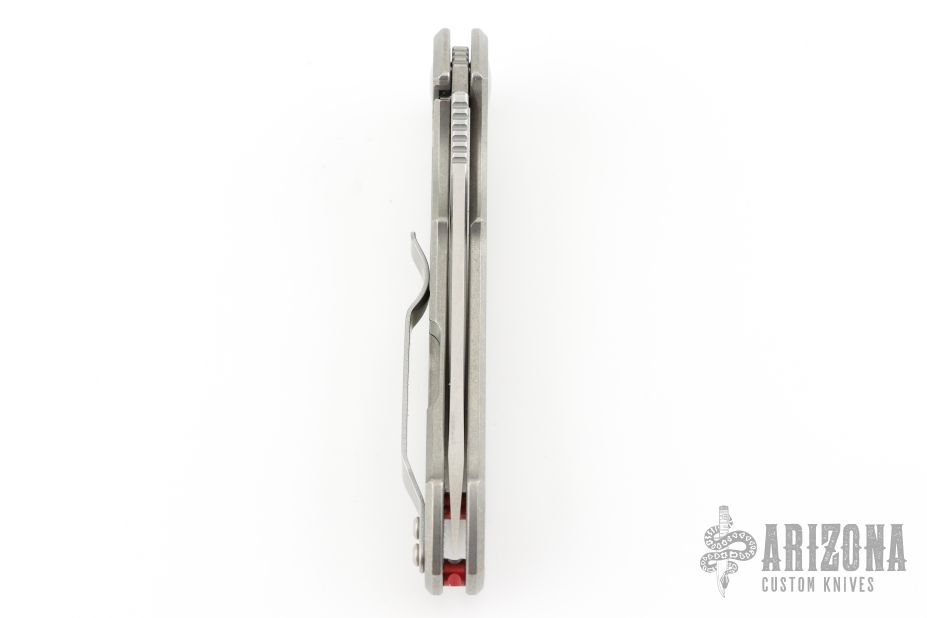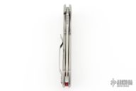This 0450 Sinkevich designed folder from Zero Tolerance features a drop point blade with swedge and flipper. The handle is comprised of a tumbled titanium frame over red anodized aluminum stand offs, and titanium pocket clip. Has a couple light scuffs, excellent condition otherwise.