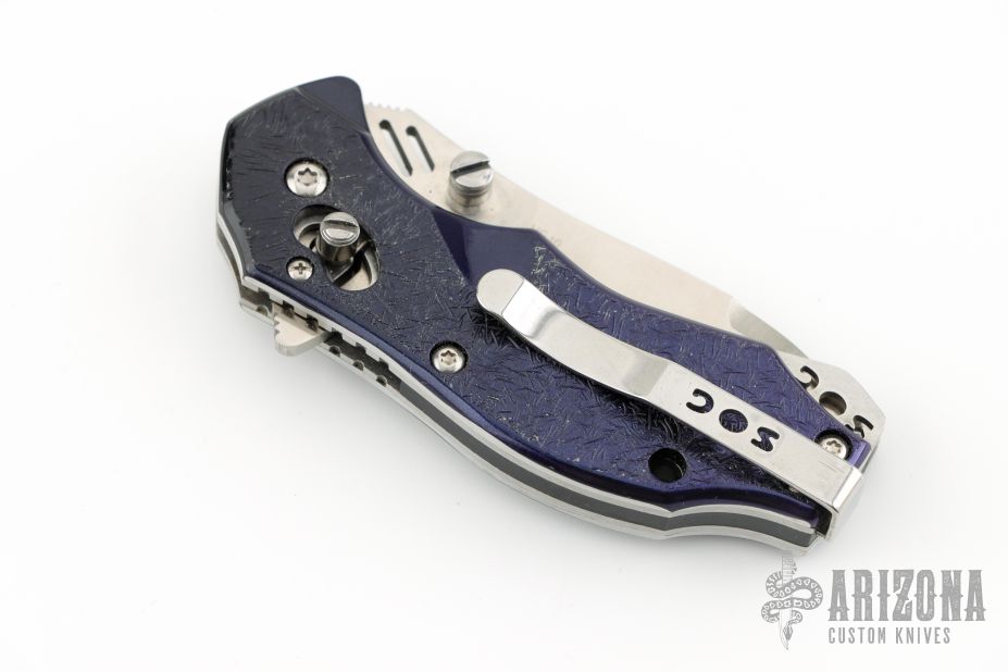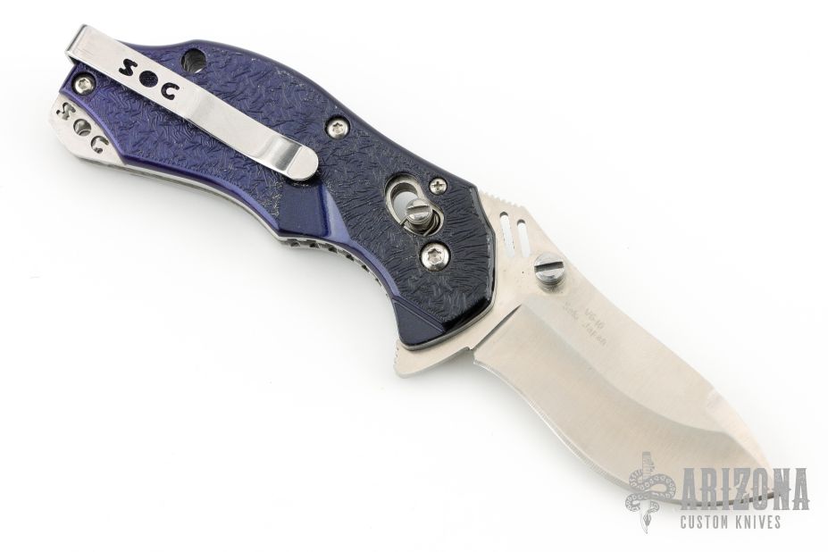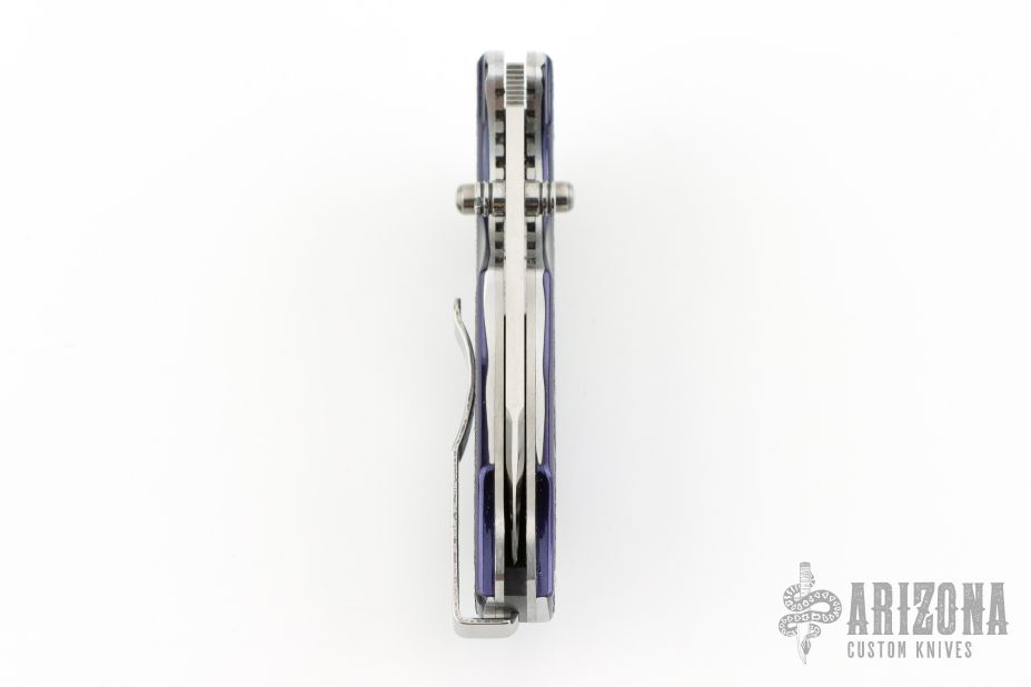 Purple anodized handle. Tip up carry clip, reversible. Excellent condition.