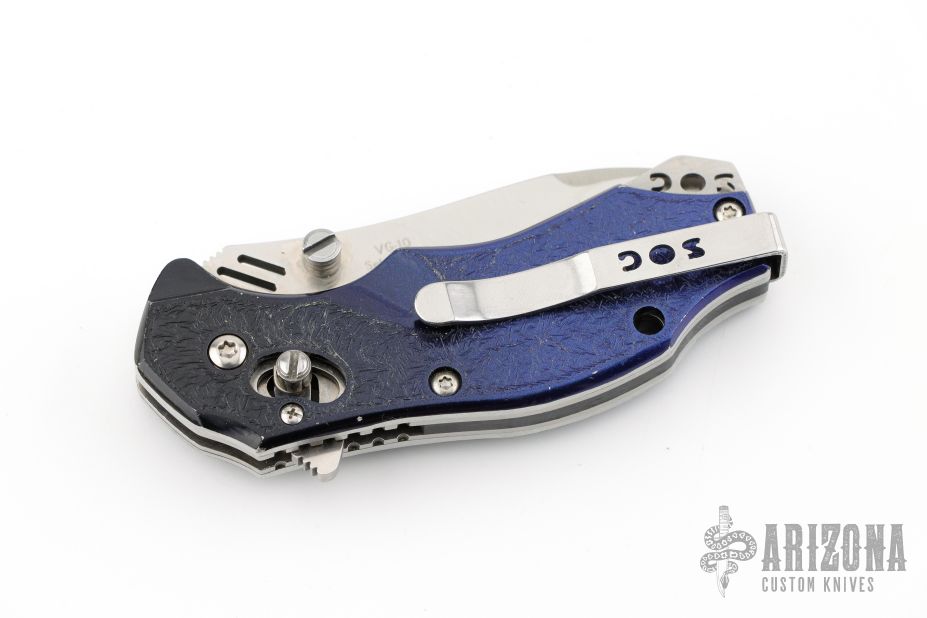 Blue anodized handle. Tip up carry clip, reversible. Has a couple light scuffs, otherwise Excellent condition.