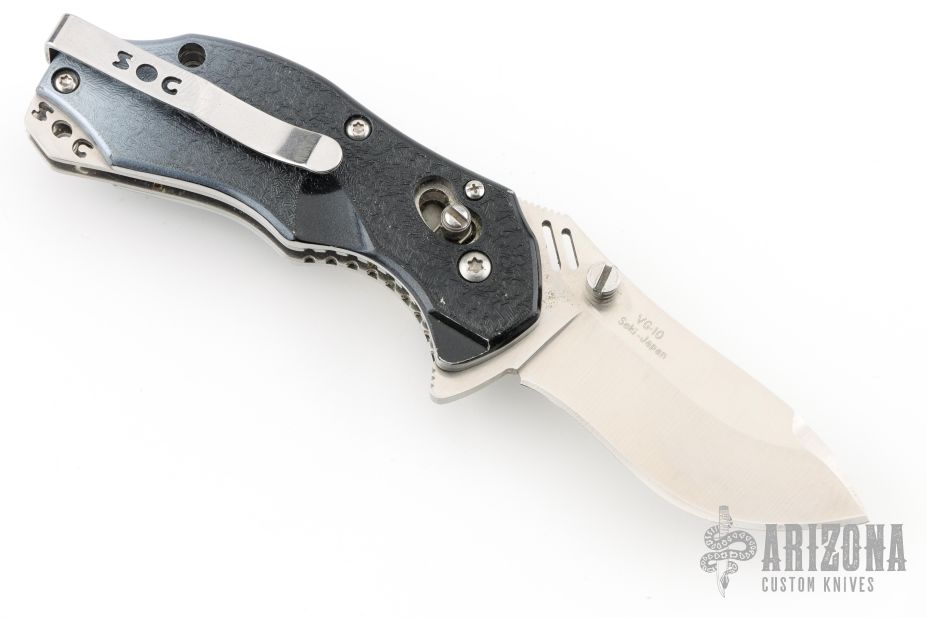 Maker statement: "The muscular stance and bulging form belay a quiet confidence. This little guy has its own point of view and the strength to back it up. With a very innovative textured machined aluminum handle, the Bluto handles well. Its VG-10 blade, Arc-lock and hardened scalloped steel liners make a rock solid package. The sweeping blade style is modern and functional and unique to the SOG line. Flex a new look with the Bluto. "