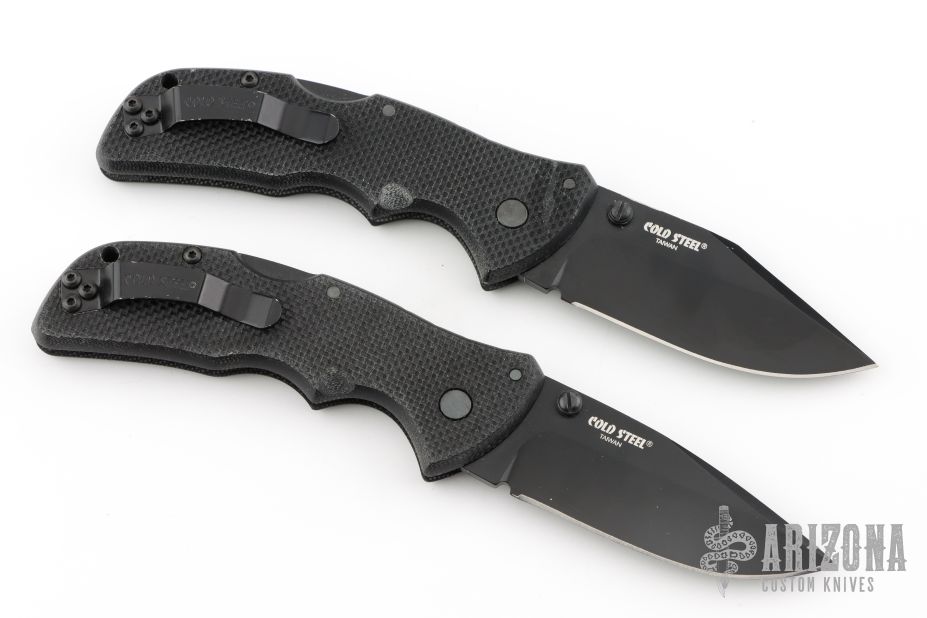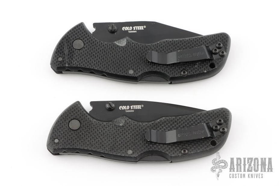 This Recon 1 folder form Cold Steel features a black clip point blade with dual thumb studs. The handle has black G-10 scales with a black stainless steel clip, left or right-handed carry. Has some scuffs and scratches, great condition otherwise.