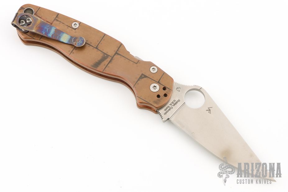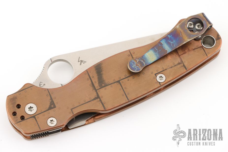 Has some scuffs and scratches, otherwise good condition. This one has Custom copper scales and a deep carry titanium clip.