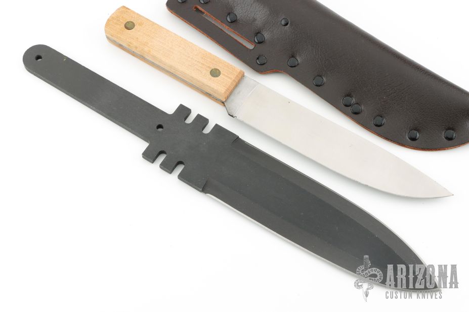 Black double edge blade, .211" blade stock, 2.045 blade depth, full tang construction. Has scuffs, scratches, and a couple of rolls in the blade edge. 7" Blade, 14.125" Overall. Great condition otherwise.