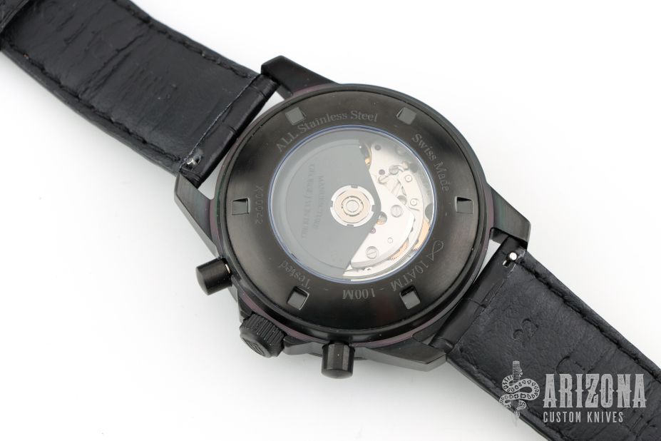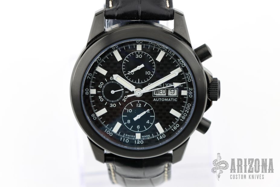 MGJVB Men's Sport II Black Stainless Steel Automatic Chronograph Watch - Leather Strap