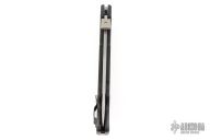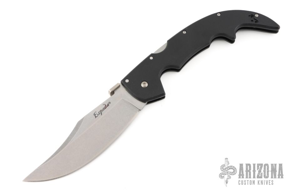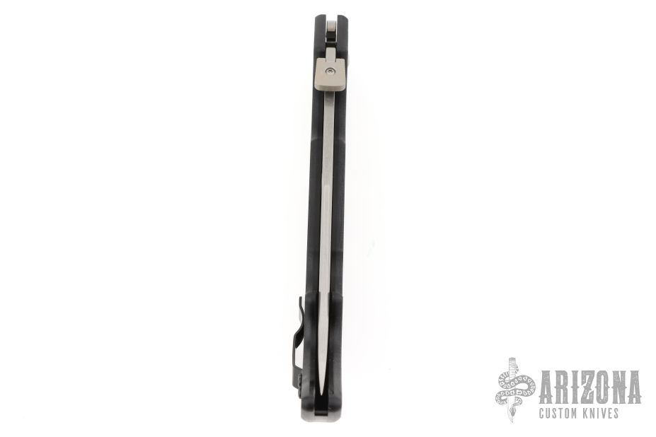 This Espada Lockback Folder has a stone washed upswept blade with thumb disk. Handle is black G10 with black stainless steel lock, black fiber back spacer, and black stainless steel tip up (RH/LH reversible) clip. Comes with original box, and extra clip. New condition.