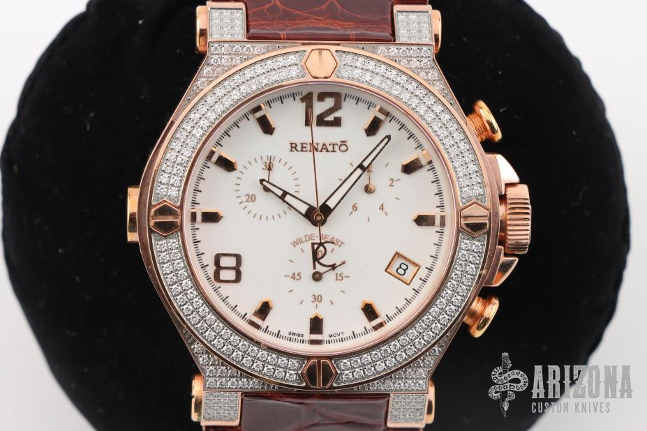 Renato Diamond Wildebeast Grand Reserve Limited Edition #72/180 Rare 2.45 CT. Comes with original box. Has some light scratches, otherwise excellent condition. -All stainless steel -G10.211 Movement -30ATM Water Resistant -Rose Gold colored