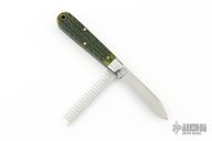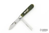 The Tidioute model 15 Barlow is a classic, traditional profile, single blade slip joint folder that has a timeless appeal. The Barlow pattern originated in Sheffield England, but it is American as “apple pie” thanks to the popularity in postcolonial America. A modified version of the classic design, the Urban Jack Knife retains the spear blade and teardrop handle with short bolsters for a more modern look paired with the BRR Tool (comb), popular for urban and rural carry. This version comes with a satin finished blade and OD Green canvas Micarta covers.