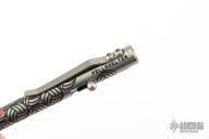 "I am a folder maker. While there will always be the occasional fixed blade, folders are my passion. The steels I enjoy working with include CPM154, ATS-34, 440C, S30V, and Stainless Damascus from Devin Thomas. All of the metal parts on my knives that can be Titanium are Titanium including frames, liners, thumbstuds, bolsters, clips and spacers. Pretty much everything except for the blade. I often anodize a substantial portion of my titanium, and can get a deep green that few makers succeed at. As far as handle materials go, I mostly use Carbon fiber, G10, or Micarta. I use large bronze pivot bushings in all of my folders, and either Nylatron or Bronze washers. All of my parts are made in-house except the screws. I have an old Bridgeport Mill, an older Logan Lathe (1943), a Hardcore grinder, and various other tools, lots of them made by myself. I also do all of my own Heat treating in an EvenHeat Oven." My knives have won several major awards, including Best Tactical Folder at the Blade Show 2011.