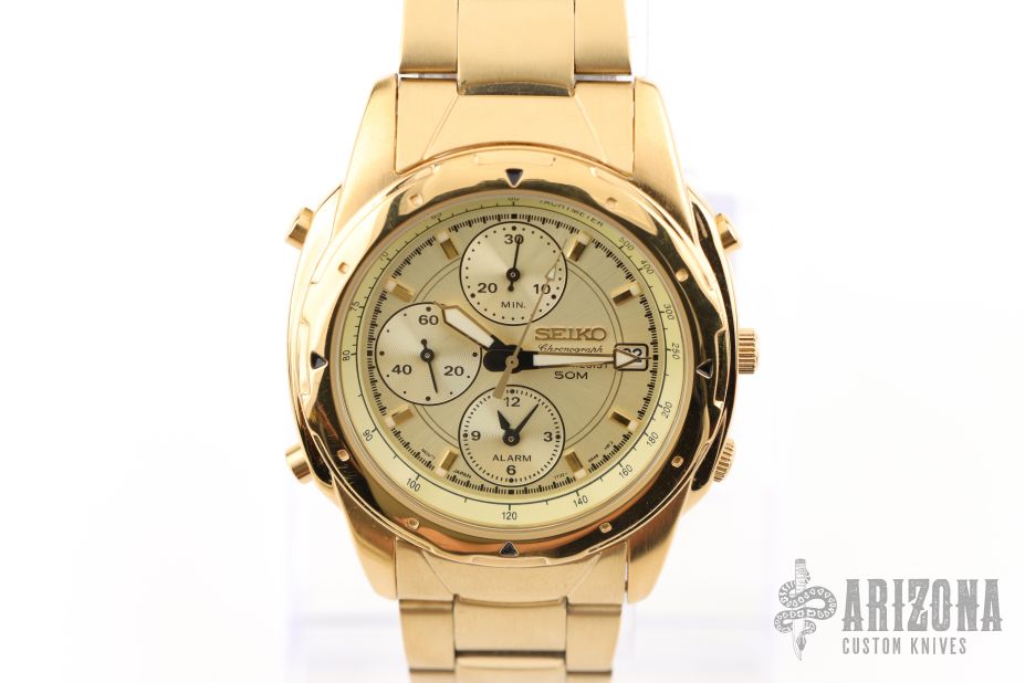 SEIKO Chronograph - 7T32-6M59 Chrono-Alarm. Gold color. Also includes original box and papers. Has a couple light scuffs, excellent condition otherwise.